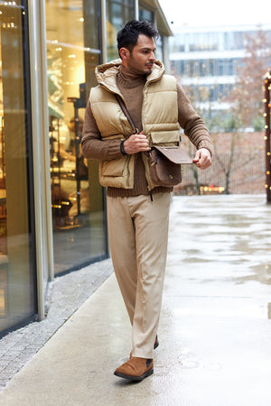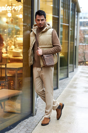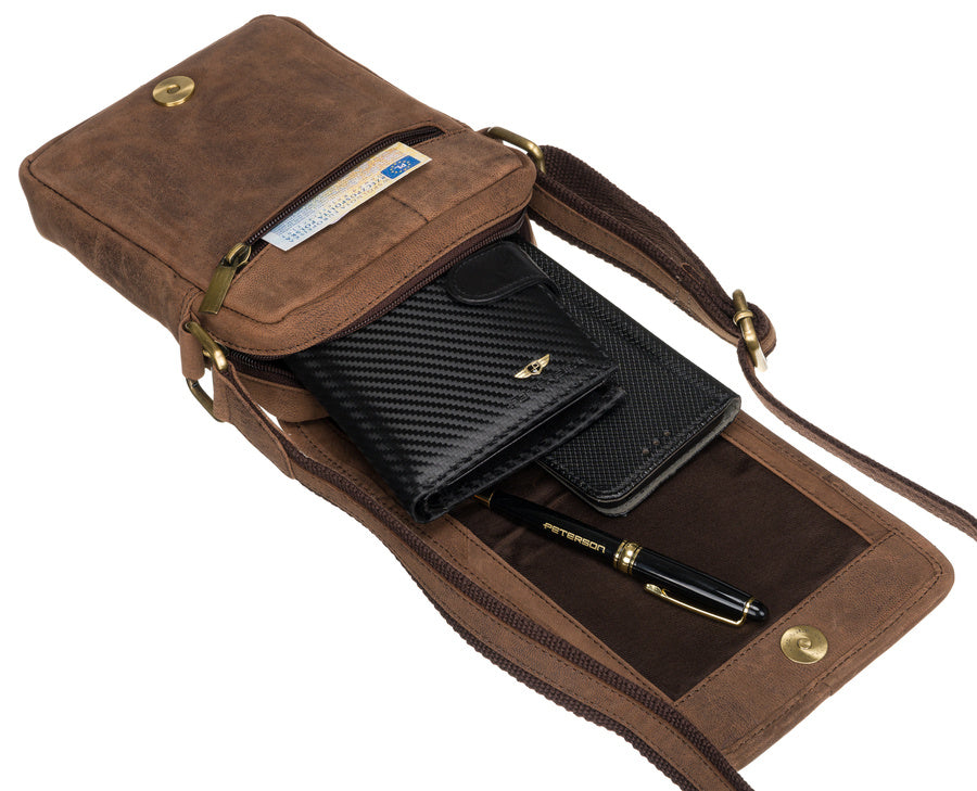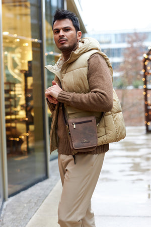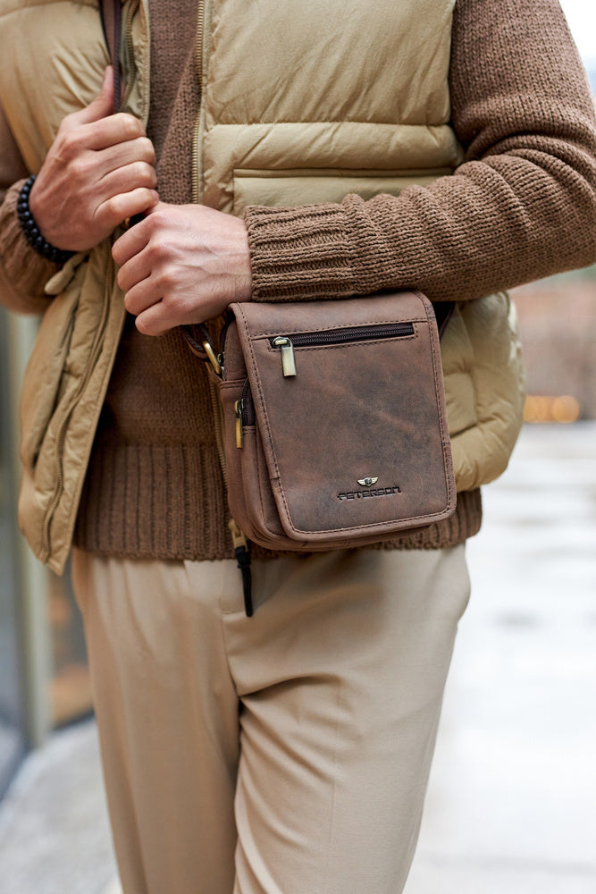 Šī elegantā vīriešu rokassoma ir izgatavota no augstas kvalitātes īstas ādas, kas nodrošina izturību un stilīgu izskatu. Tumši brūnā krāsa piešķir tai klasisku un daudzpusīgu izskatu, kas piemērots dažādiem gadījumiem.