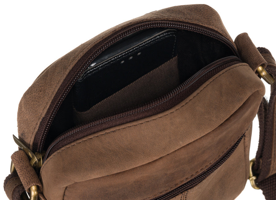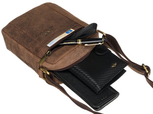 Šī elegantā vīriešu rokassoma ir izgatavota no augstas kvalitātes īstas ādas, kas nodrošina izturību un stilīgu izskatu. Tumši brūnā krāsa piešķir tai klasisku un daudzpusīgu izskatu, kas piemērots dažādiem gadījumiem.