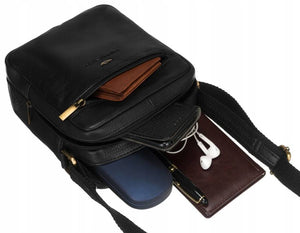 Šī elegantā vīriešu rokassoma ir izgatavota no augstas kvalitātes īstas ādas, kas nodrošina izturību un stilīgu izskatu. Melnā krāsa nodrošina daudzpusību, tāpēc rokassoma lieliski iederēsies dažādās apģērbu kombinācijās.