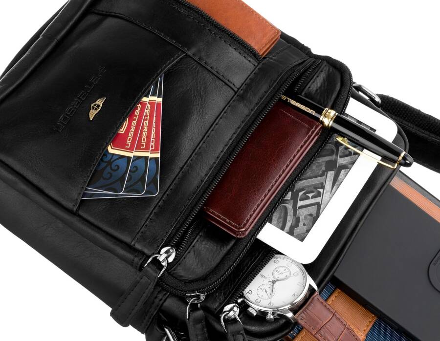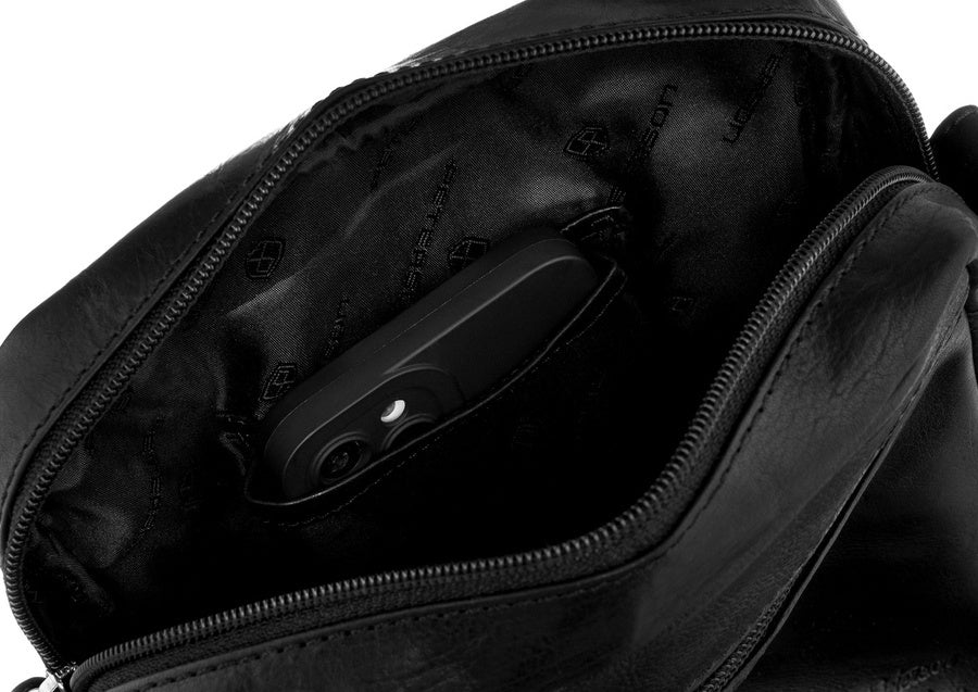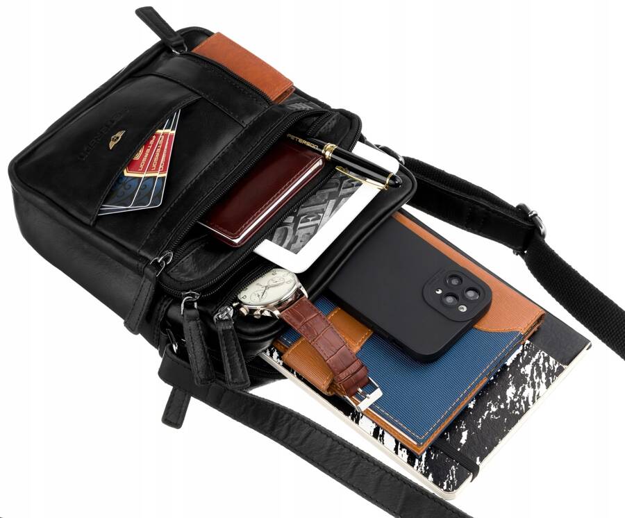 Šī vīriešu rokassoma ir lieliska izvēle tiem, kas novērtē kvalitāti un funkcionalitāti. Izgatavota no īstas ādas, tā nodrošina izturību un stilīgu izskatu. Melnā krāsa nodrošina daudzpusību, un kompaktais izmērs ļauj ērti pārnēsāt ikdienas priekšmetus. Regulējamā siksna nodrošina ērtu nēsāšanu, un daudzās kabatas palīdz sakārtot visas nepieciešamās lietas.