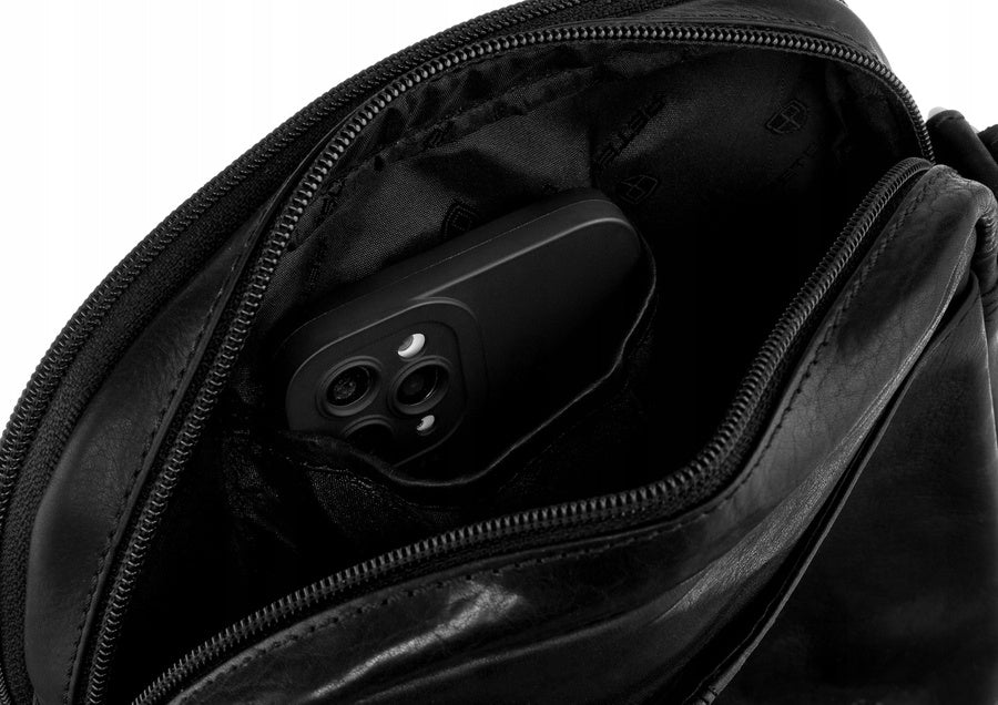 Šī vīriešu rokassoma ir lieliska izvēle tiem, kas novērtē kvalitāti un funkcionalitāti. Izgatavota no īstas ādas, tā ir izturīga un stilīga, un melnā krāsa piešķir daudzpusību. Rokassomai ir divi nodalījumi un četras kabatas, lai jūs varētu viegli ievietot visas nepieciešamās lietas. Regulējamā siksna ļauj pielāgot rokassomu savām vajadzībām.