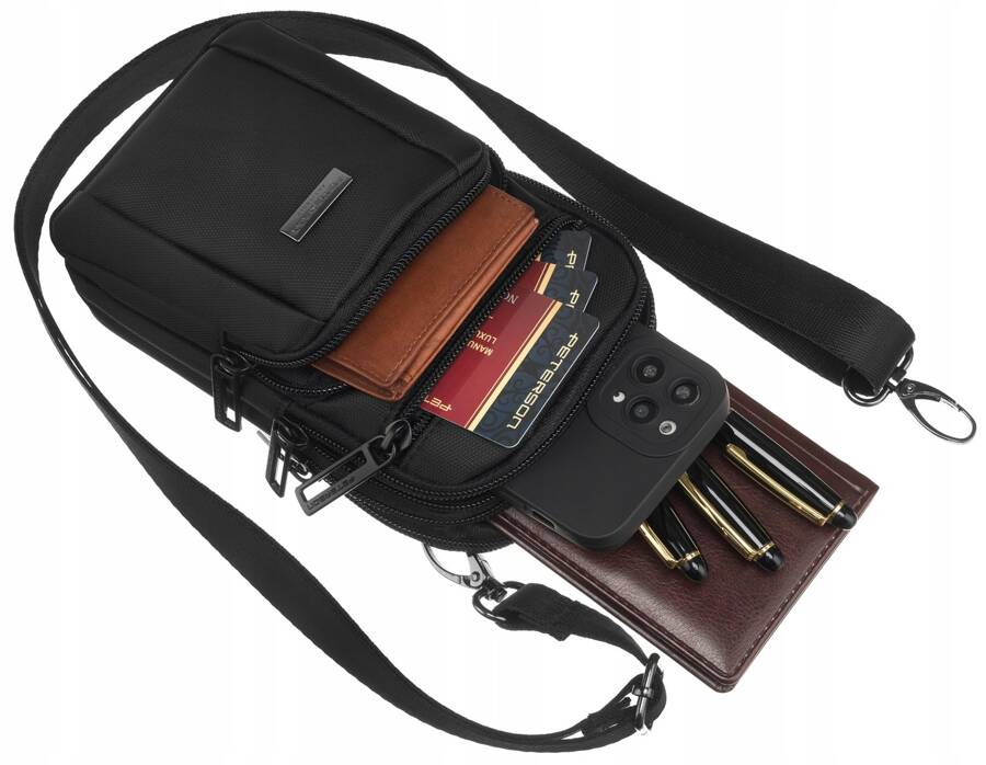 Šī vīriešu rokassoma ir lieliska izvēle tiem, kas novērtē kompaktumu un funkcionalitāti. Melnā krāsa un minimālistiskais dizains piešķir eleganci, savukārt praktiskais nodalījumu un kabatu izvietojums nodrošina ērtu priekšmetu glabāšanu.