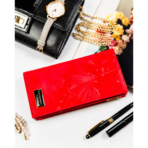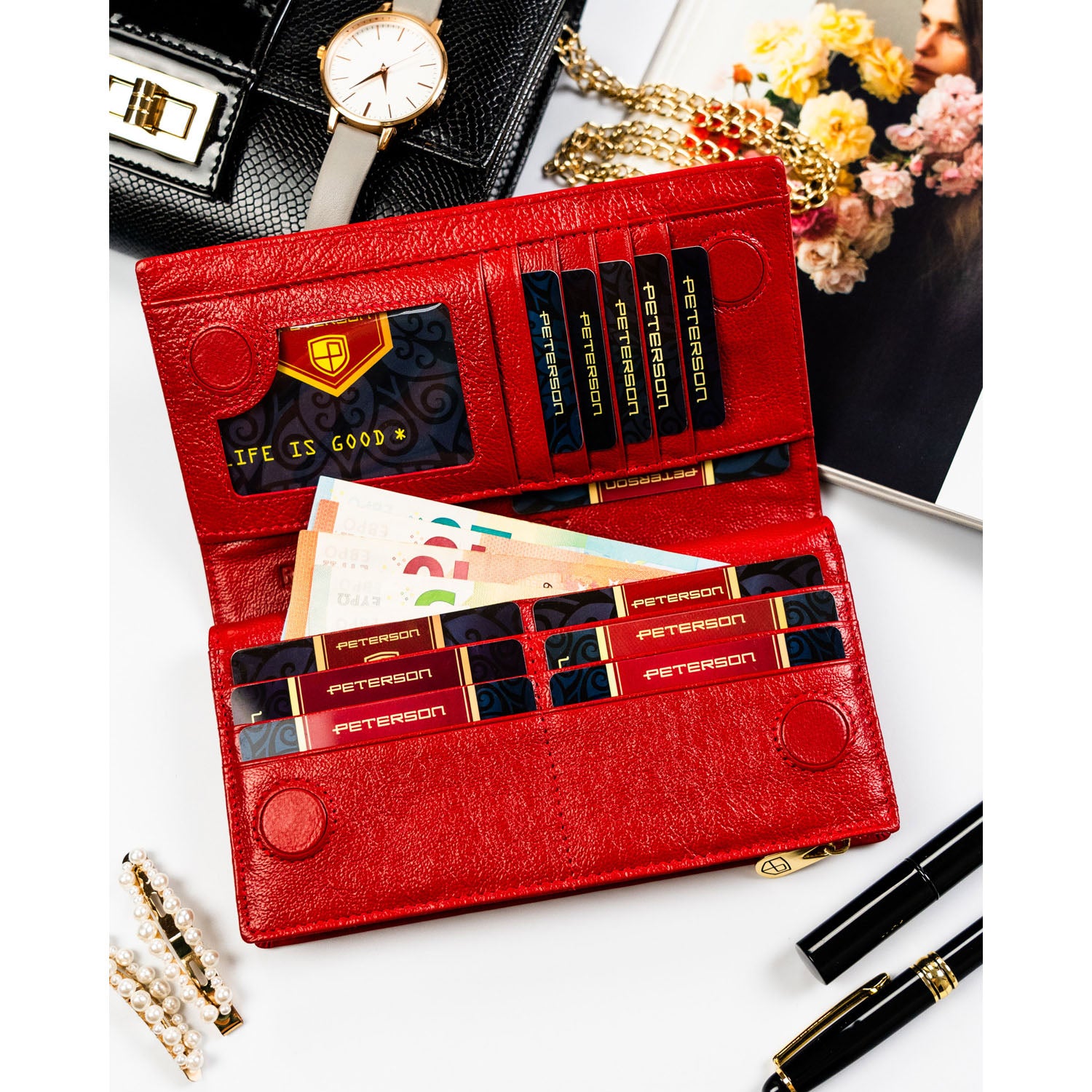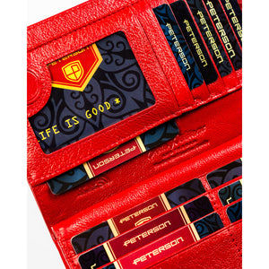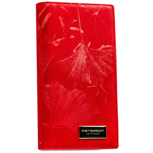 Peterson sarkans sieviešu maks, kas izgatavots no mākslīgās ādas ar RFID aizsardzību.