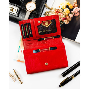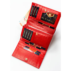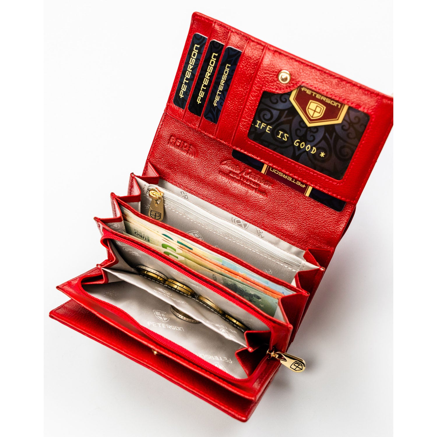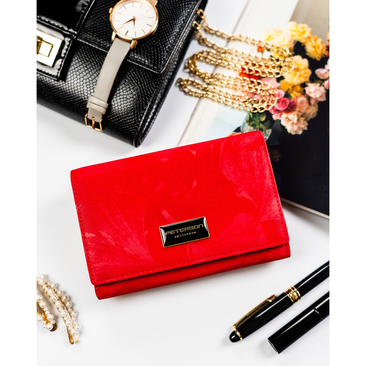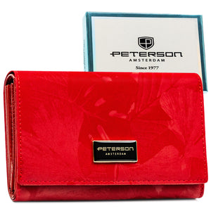 Peterson sarkans sieviešu maks, kas izgatavots no mākslīgās ādas ar RFID aizsardzību.