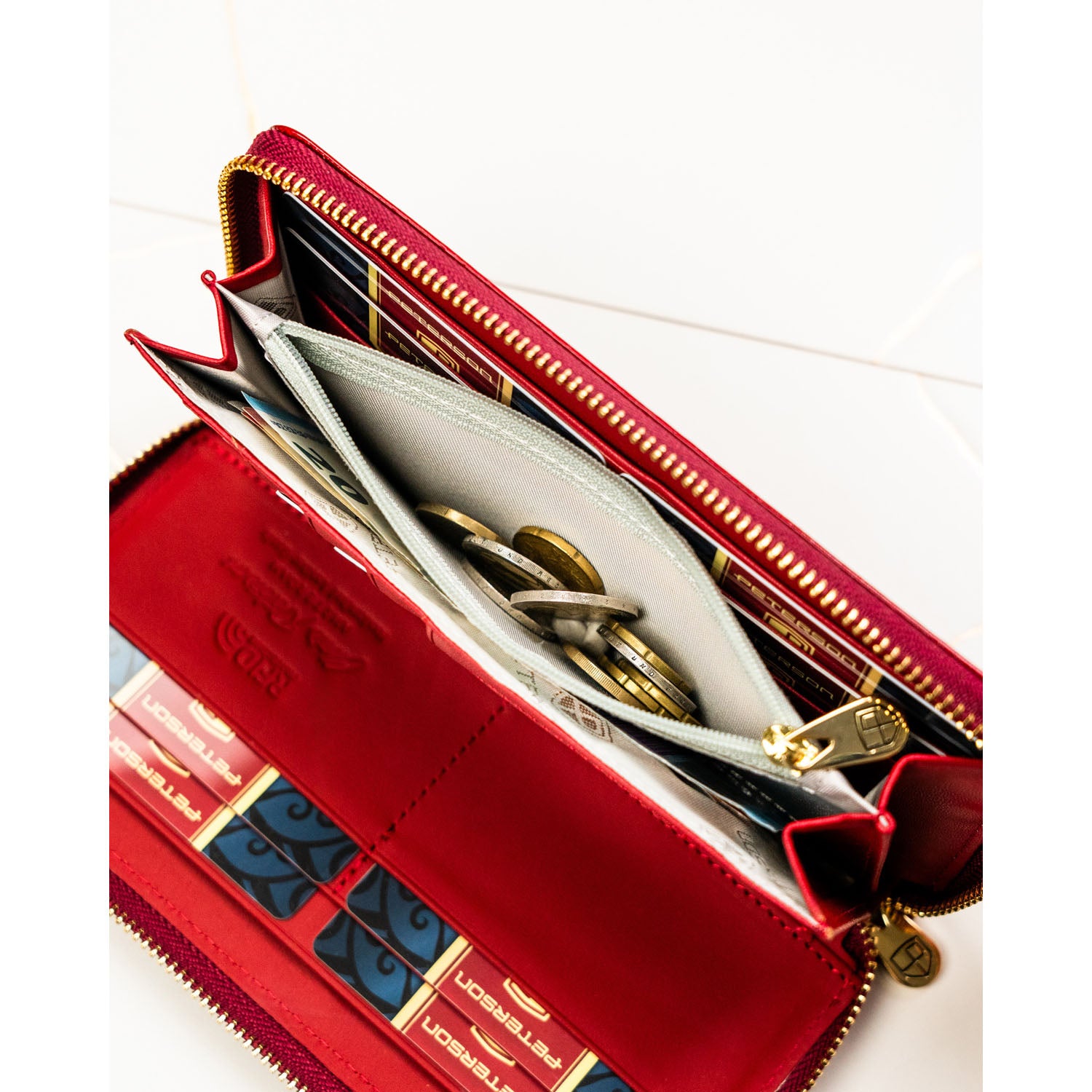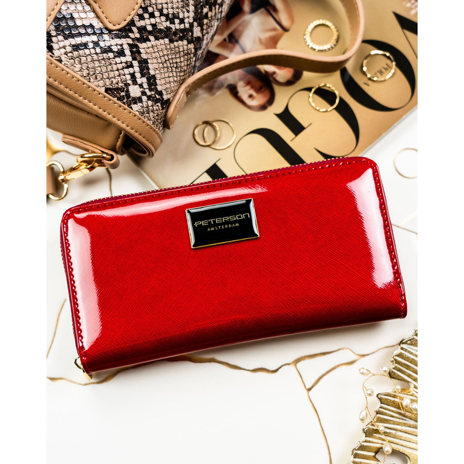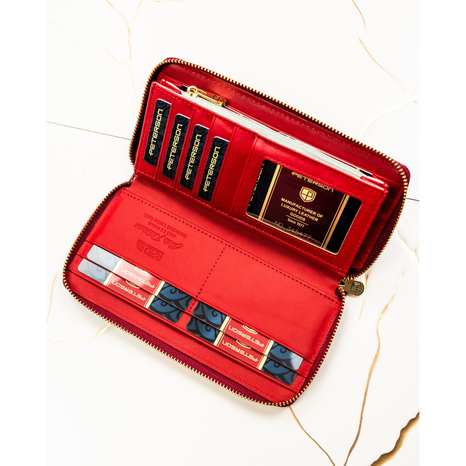 Peterson sarkans sieviešu maks, kas izgatavots no īstas ādas ar RFID aizsardzību.