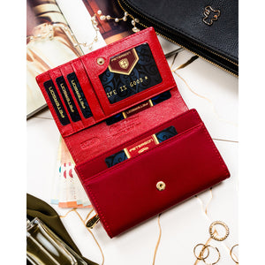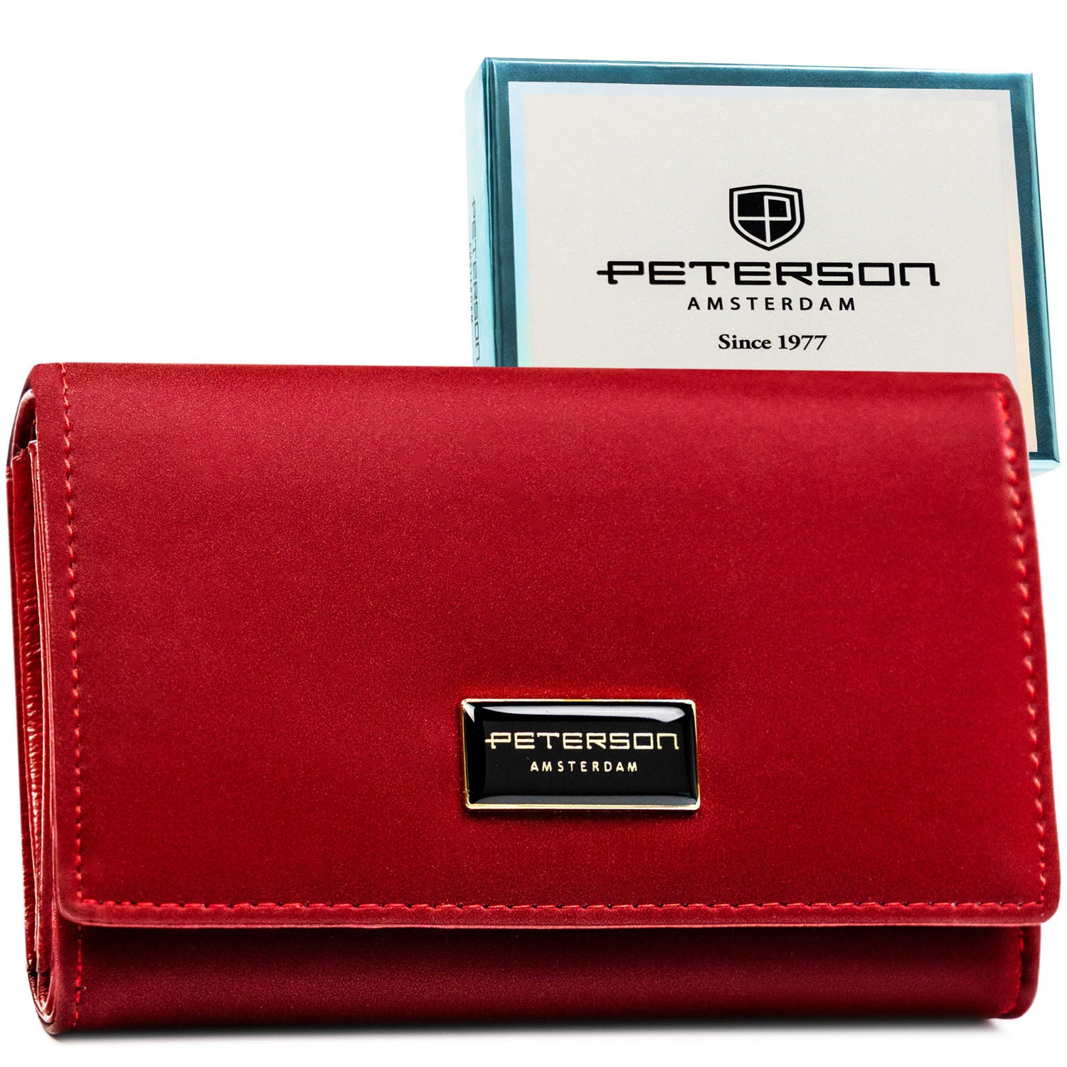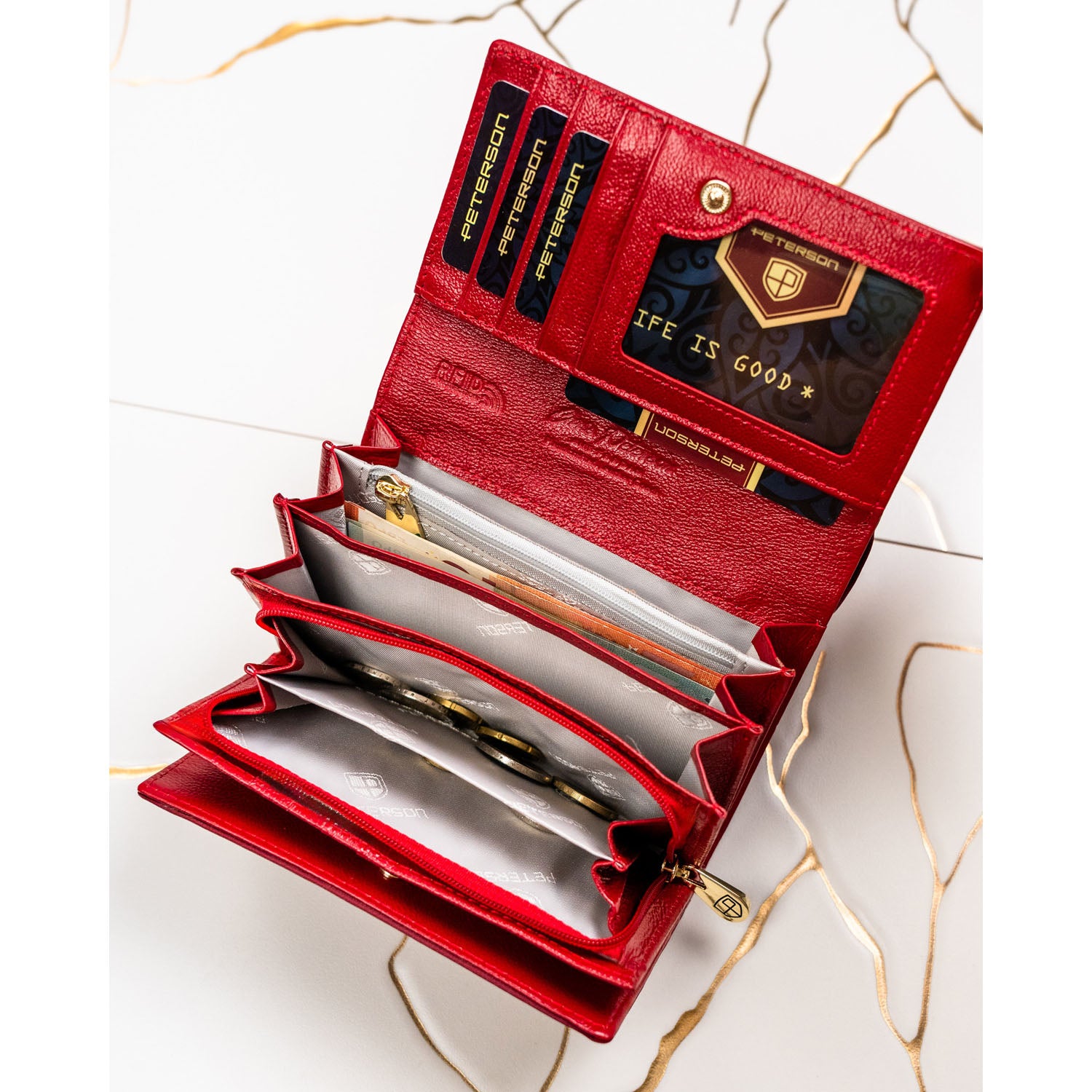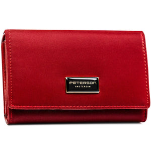 Peterson sarkans sieviešu maks, kas izgatavots no mākslīgās ādas ar RFID aizsardzību.