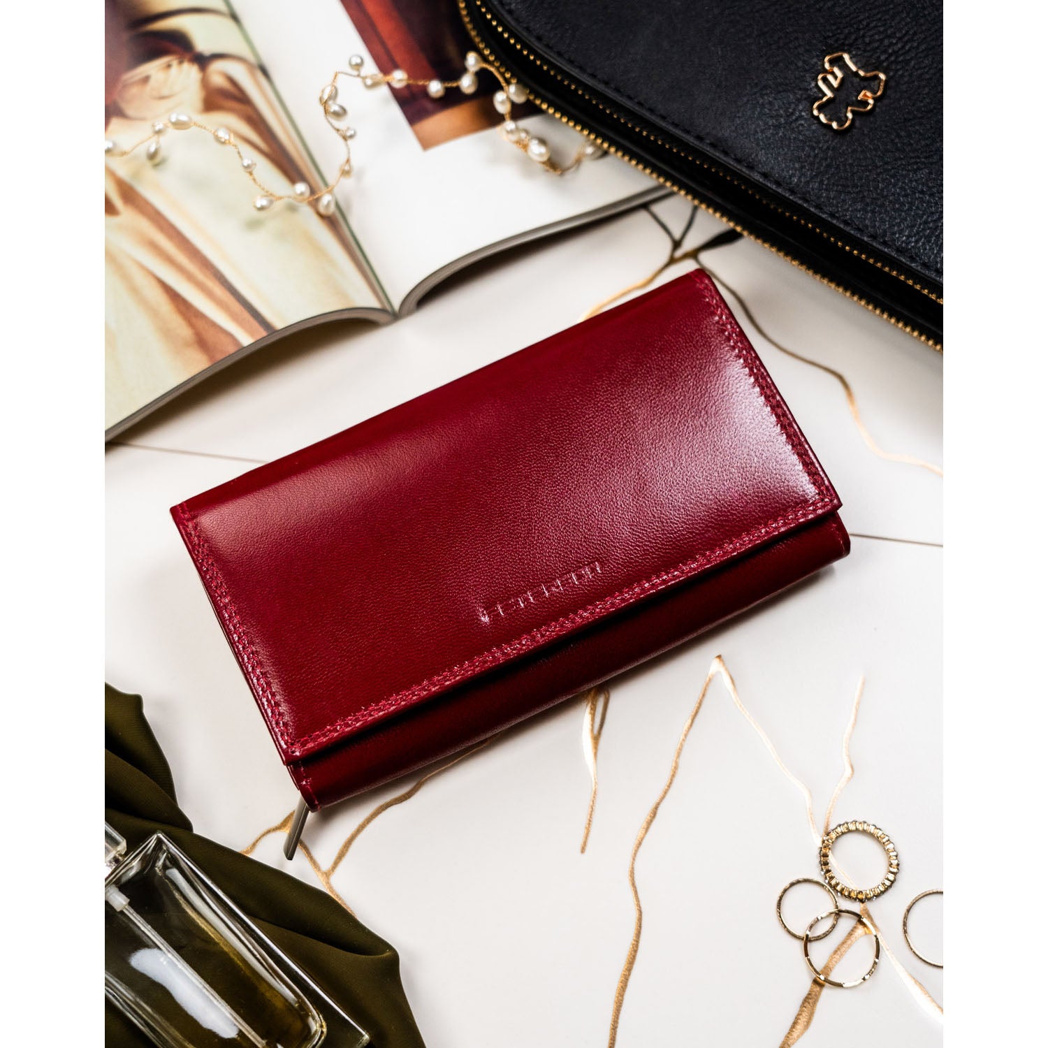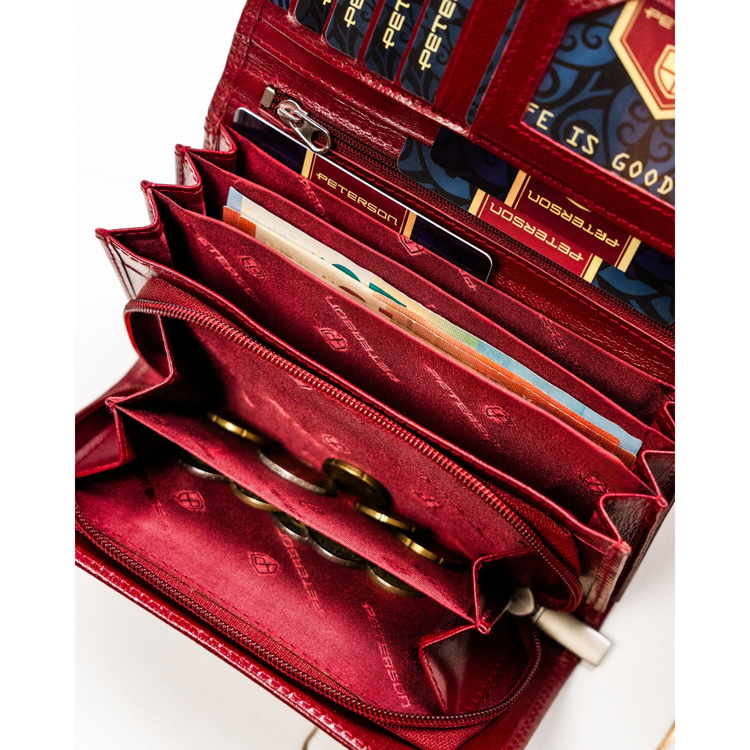 Peterson sarkans sieviešu maks, kas izgatavots no īstas ādas ar RFID aizsardzību.
