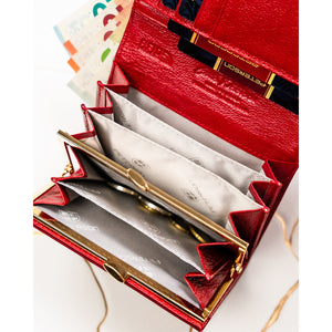 Peterson sarkans sieviešu maks, kas izgatavots no mākslīgās ādas ar RFID aizsardzību.