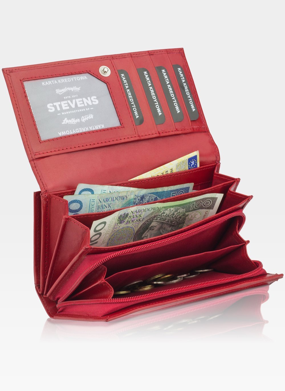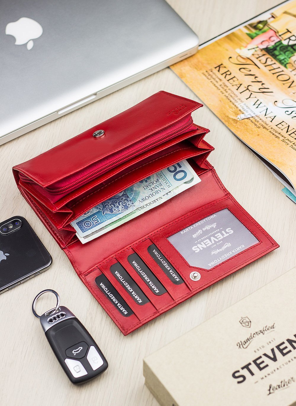 Šis elegantais sieviešu maks ir izgatavots no augstas kvalitātes īstas ādas, lai nodrošinātu izturību un stilu. Makam ir RFID aizsardzība, kas aizsargā jūsu bezkontakta karšu datus no nevēlamas skenēšanas. Tas ir ievietots oriģinālajā STEVENS® kastītē, padarot to par lielisku dāvanu.