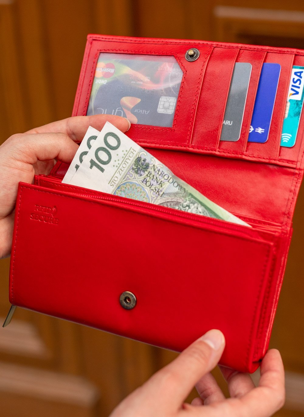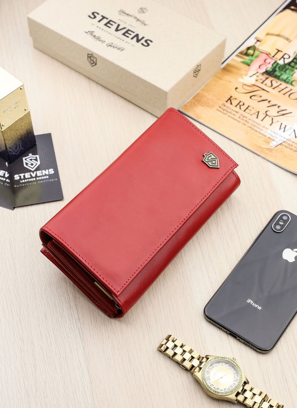 Sieviešu ādas maks "STEVENS" Z03-210 sarkans ar RFID aizsardzību