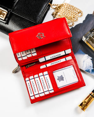 Šis elegantais sieviešu maks ir izgatavots no augstas kvalitātes īstas ādas, nodrošinot izturību un uzticamību.