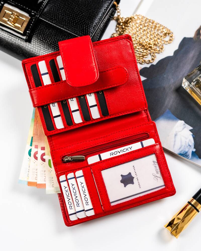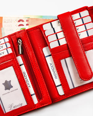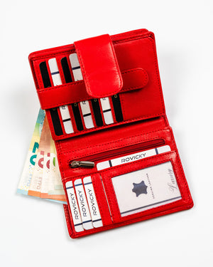 Šis elegantais sieviešu maks ir izgatavots no augstas kvalitātes īstas sarkanas ādas, kas nodrošina izcilu stilu un izturību.