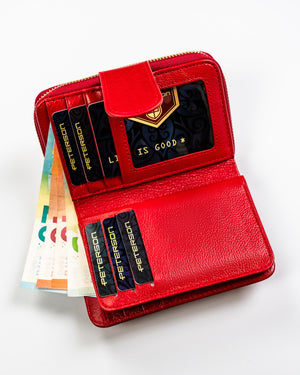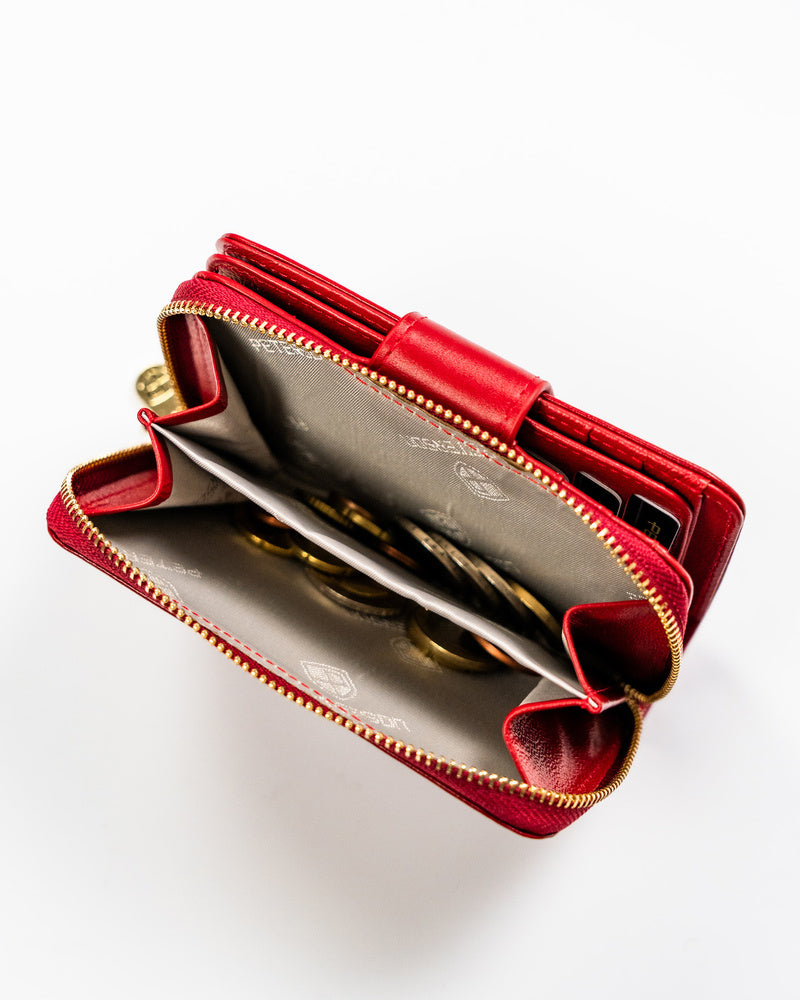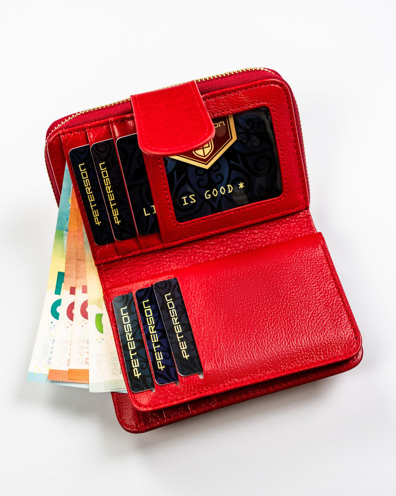 Šis elegantais sieviešu maks no Peterson kolekcijas ir izgatavots no augstas kvalitātes īstas ādas, kas nodrošina izturību un stilīgu izskatu. Spilgti sarkanā krāsa piešķir ekskluzivitāti un eleganci.