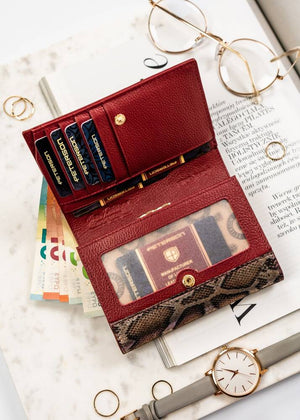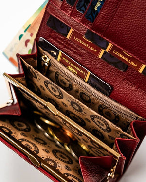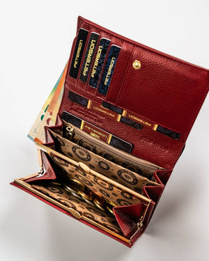 Šis elegantais sieviešu maks no Peterson kolekcijas ir izgatavots no augstas kvalitātes dabīgas un lakotas ādas, radot greznu sajūtu. Spilgti sarkanā krāsa piešķir ekskluzivitāti un stilu.