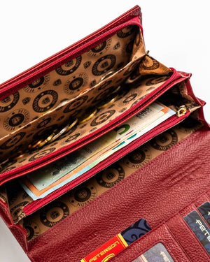 Šis elegantais sieviešu maks no Peterson ir izgatavots no augstas kvalitātes dabīgas lakotas ādas, kas piešķir greznības un izturības sajūtu. Spilgti sarkanā krāsa uzsver stilu un ekskluzivitāti.