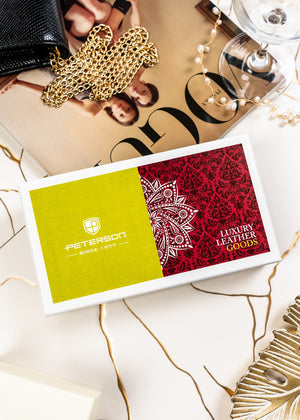 Šis elegantais sieviešu maks no Peterson ir izgatavots no augstas kvalitātes dabīgas lakotas ādas, kas piešķir greznības un izturības sajūtu.