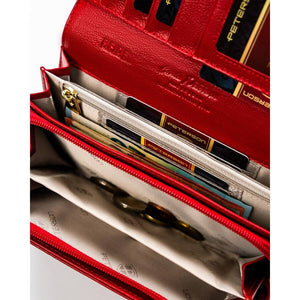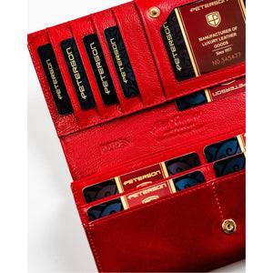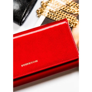 Šis elegantais sieviešu maks no Peterson ir izgatavots no augstas kvalitātes dabīgas un lakotas ādas, radot greznu sajūtu. Spilgti sarkanā krāsa piešķir ekskluzivitāti un stilu.