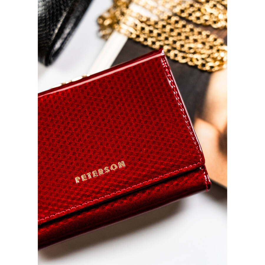 Šis elegantais sieviešu maks no Peterson ir izgatavots no augstas kvalitātes īstas ādas, kas nodrošina izturību un stilu. Lakotāda piešķir papildu spīdumu un greznību.