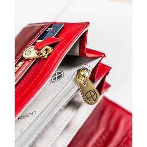 Šis elegantais sieviešu maks no Peterson ir izgatavots no augstas kvalitātes dabīgas lakotas ādas, kas piešķir greznības un izturības sajūtu. Spilgti sarkanā krāsa uzsver stilu un ekskluzivitāti.