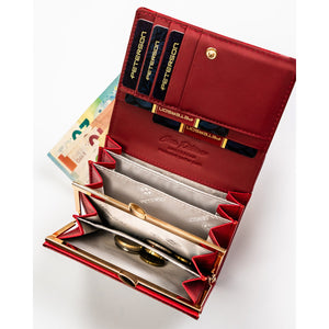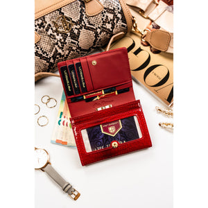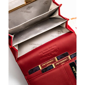 Šis elegantais sieviešu maks no Peterson kolekcijas ir izgatavots no augstas kvalitātes īstas un lakotas ādas. Tā spilgti sarkanā krāsa piešķir tam ekskluzivitāti un stilu.