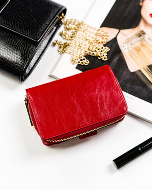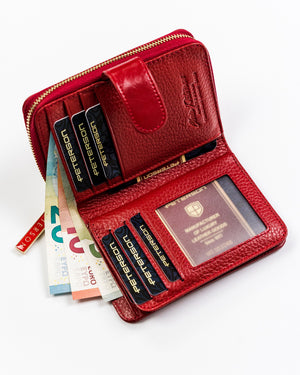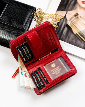 Šis elegantais un kompaktais maks ir lieliska izvēle sievietēm, kuras novērtē kvalitāti un drošību. Izgatavots no īstas ādas, tas ne tikai izskatās grezni, bet arī nodrošina izturību. Sarkanā krāsa piešķir ekskluzivitāti, un RFID aizsardzība palīdz aizsargāt jūsu kartes no nevēlamas skenēšanas.