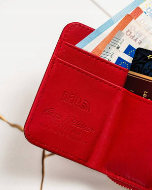 Šis elegantais sieviešu maks no Peterson kolekcijas ir izgatavots no augstas kvalitātes organiskās ādas. Tā spilgti sarkanā krāsa piešķir tam ekskluzivitāti un stilu.
