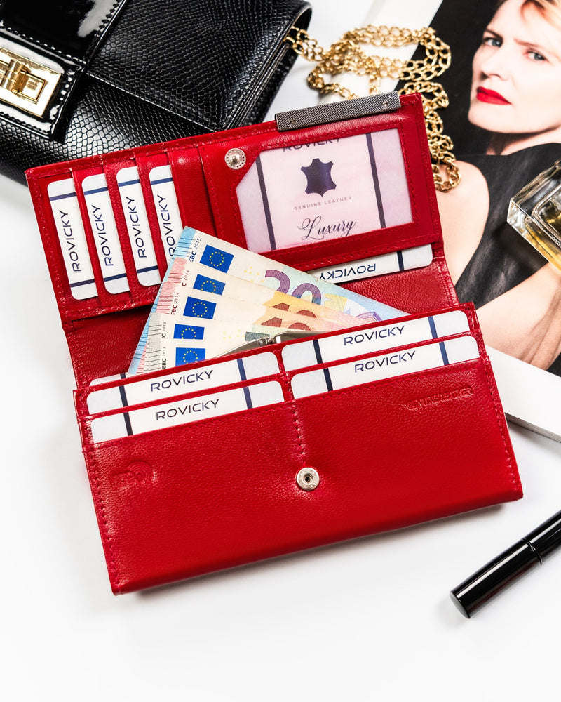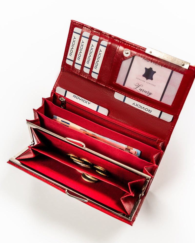 Šis elegantais sieviešu maks no 4U Cavaldi ir lieliska izvēle tiem, kas novērtē kvalitāti un funkcionalitāti. Izgatavots no īstas ādas, tas ne tikai izskatās grezni, bet arī ir izturīgs. Sarkanā krāsa piešķir stilu, un lielais izmērs nodrošina, ka jums ir pietiekami daudz vietas visām jūsu mantām. Makam ir 6-10 karšu nodalījumi, nodalījums monētām un RFID aizsardzība, lai jūsu dati būtu drošībā.