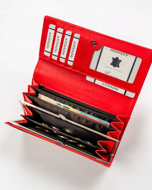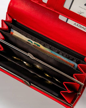 Šis elegantais sieviešu maks no 4U Cavaldi ir izgatavots no augstas kvalitātes eko ādas. Spilgti sarkanā krāsa piešķir tam stilu, savukārt lielais izmērs nodrošina pietiekami daudz vietas visām jūsu kartēm un citiem sīkumiem. Ar 6-10 karšu nodalījumiem šis maks ir praktiska un moderna izvēle ikvienai sievietei.