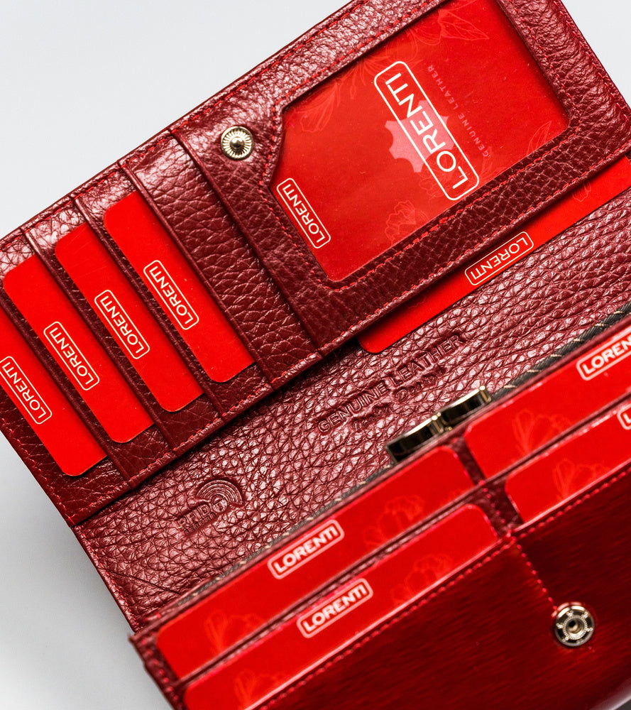 Šis elegantais Lorenti maks ir lieliska izvēle sievietēm, kuras novērtē kvalitāti un stilu. Izgatavots no īstas ādas, tas ne tikai izskatās grezni, bet arī ir izturīgs. Sarkanā krāsa piešķir tam izsmalcinātību, un lielais izmērs nodrošina, ka viss nepieciešamais ir pa rokai. Ar 6-10 karšu nodalījumiem un atsevišķu nodalījumu monētām šis maks ir praktisks un ērts ikdienas lietošanai.