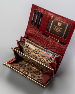 Šis elegantais sarkanais maks, kas izgatavots no īstas ādas, ir lieliska izvēle sievietēm, kuras novērtē kvalitāti un funkcionalitāti. Iekšpusē atradīsiet visu nepieciešamo ērtai ikdienas lietošanai.
