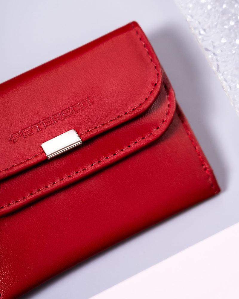 Šis elegantais un kompaktais sieviešu maks no Peterson kolekcijas ir lieliska izvēle tiem, kas novērtē kvalitāti un stilu. Izgatavots no īstas ādas, tas ir izturīgs un pievilcīgs. Sarkanā krāsa piešķir unikalitāti, un mazais izmērs padara to ērtu nēsāšanai katru dienu.