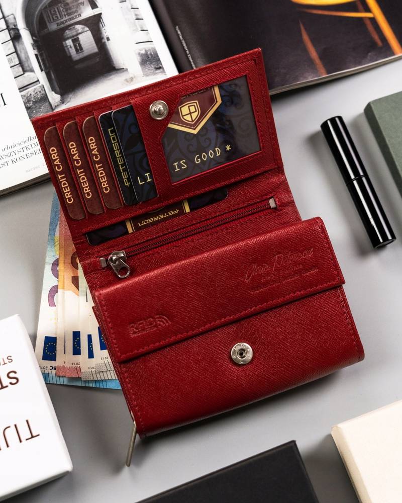 Šis elegantais sieviešu maks no Peterson ir lieliska izvēle tiem, kas meklē kvalitātes un stila apvienojumu. Izgatavots no īstas ādas , šis maks ne tikai izskatās grezns, bet arī ir izturīgs.