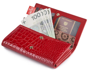 Šis elegantais sieviešu maks, kas izgatavots no īstas ādas, ir lieliska izvēle tiem, kas novērtē kvalitāti un stilu. Sarkanā krāsa piešķir tai izsmalcinātību, un lielais izmērs nodrošina, ka viss nepieciešamais būs ērti ievietojams.