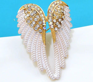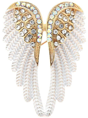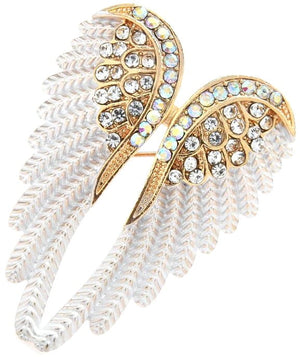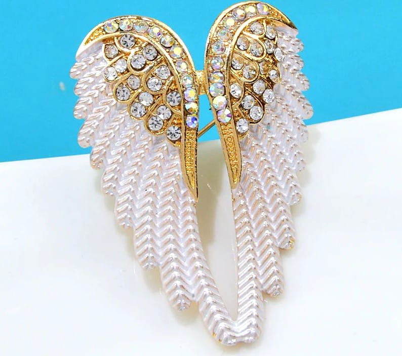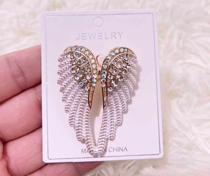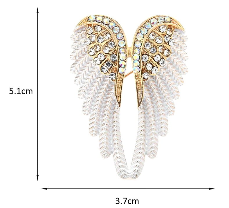 Šī elegantā baltā broša ar spārniem un mākslīgajiem dimantiem ir lielisks aksesuārs, kas piešķir stilu un šarmu jebkuram tērpam. Tā ir ideāli piemērota valkāšanai uz kleitas, jakas, cepures, somas vai mēteļa.