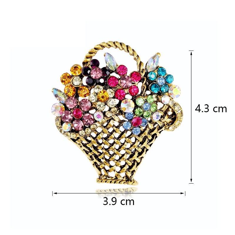Dekoratīva piespraude Kristāla grozs ar ziediem BZ139KOL
