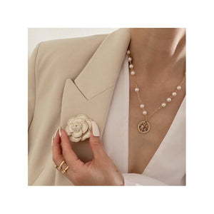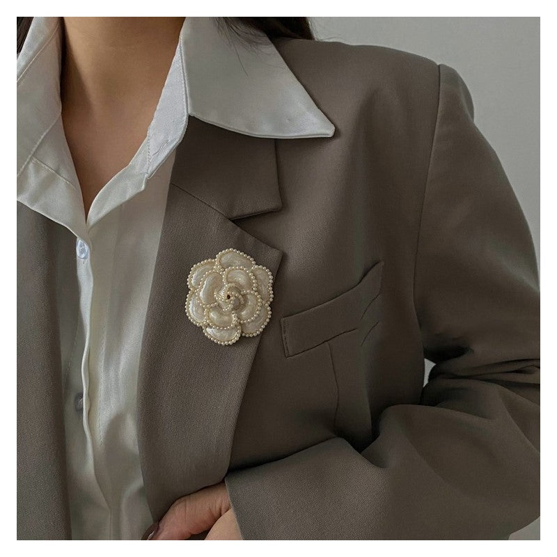 Dekoratīva krēmkrāsas broša KAMĒLIJA ar pērlēm BZ144