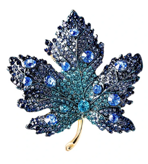 Bagātiniet savu stilu ar unikālu aksesuāru – elegantu zilu kļavas lapas piespraudi, kas bagātīgi dekorēta ar mākslīgajiem dimantiem. Šī piespraude apvieno eleganci un daudzpusību, lieliski piemērota valkāšanai pie kleitas, jakas, cepures, somas vai mēteļa.