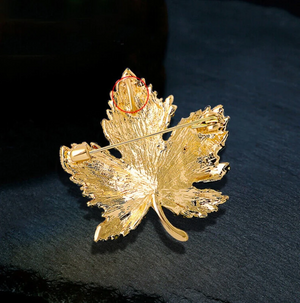 Eleganta zila kļavas lapas piespraude, dekorēta ar cirkoniem
