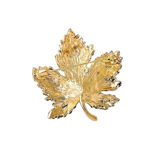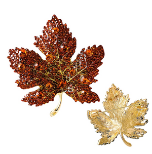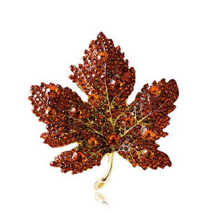 Šī elegantā sarkanās kļavas lapas broša ir lielisks aksesuārs, kas dekorēts ar spīdīgiem rhinestones akmentiņiem, kas piešķir īpašu šarmu.