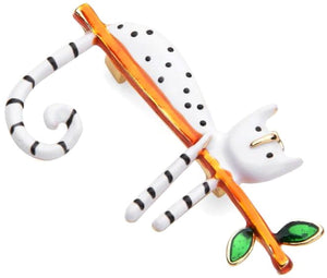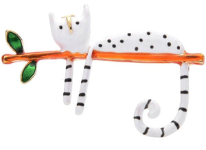 Šī elegantā broša ar baltu kaķi uz zara ir lielisks aksesuārs, kas piešķirs jūsu tērpam unikalitātes pieskārienu. Tā ir ideāli piemērota valkāšanai uz kleitas, jakas, cepures, somas vai mēteļa, pievienojot stilīgu akcentu.