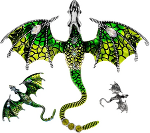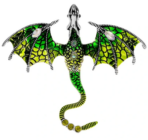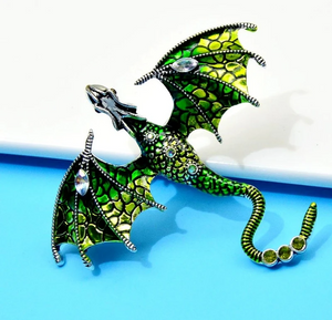 Šī elegantā zaļā pūķa piespraude, kas dekorēta ar mākslīgajiem dimantiem, ir lielisks aksesuārs, kas piešķirs jūsu tērpam eleganci. Tā ir ideāli piemērota valkāšanai uz kleitas, jakas, cepures, somas vai mēteļa.