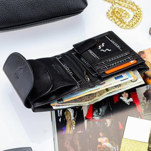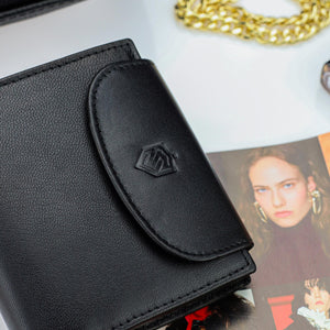 Šis elegantais sieviešu maks ir izgatavots no augstas kvalitātes īstas ādas, lai nodrošinātu izturību un stilu. Makam ir integrēta RFID aizsardzība, kas palīdz aizsargāt jūsu bezkontakta kartes no digitālo datu zādzības.