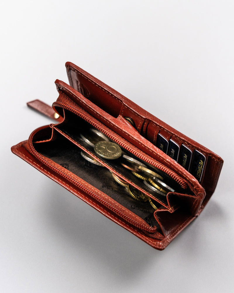 Šis elegantais sieviešu maks no Peterson ir izgatavots no augstas kvalitātes īstas ādas, kas nodrošina izturību un stilīgu izskatu. Gaiši brūnā krāsa piešķir makam klasisku šarmu, un lielais izmērs ļauj ērti uzglabāt visas nepieciešamās lietas. Ar 6-10 karšu nodalījumiem un atsevišķu nodalījumu monētām šis maks ir praktiska izvēle ikdienas lietošanai.