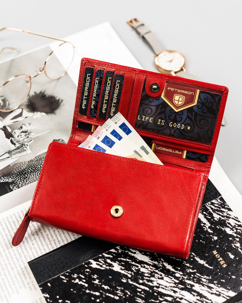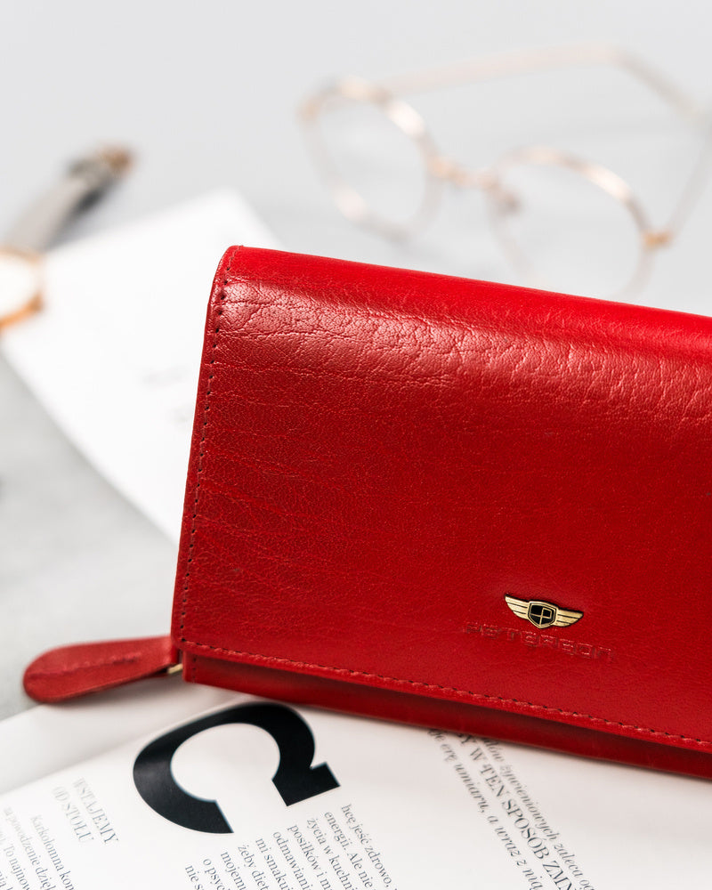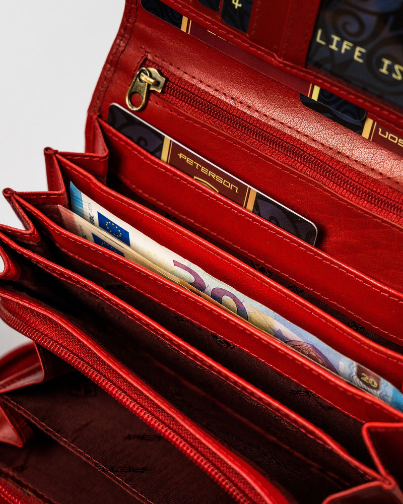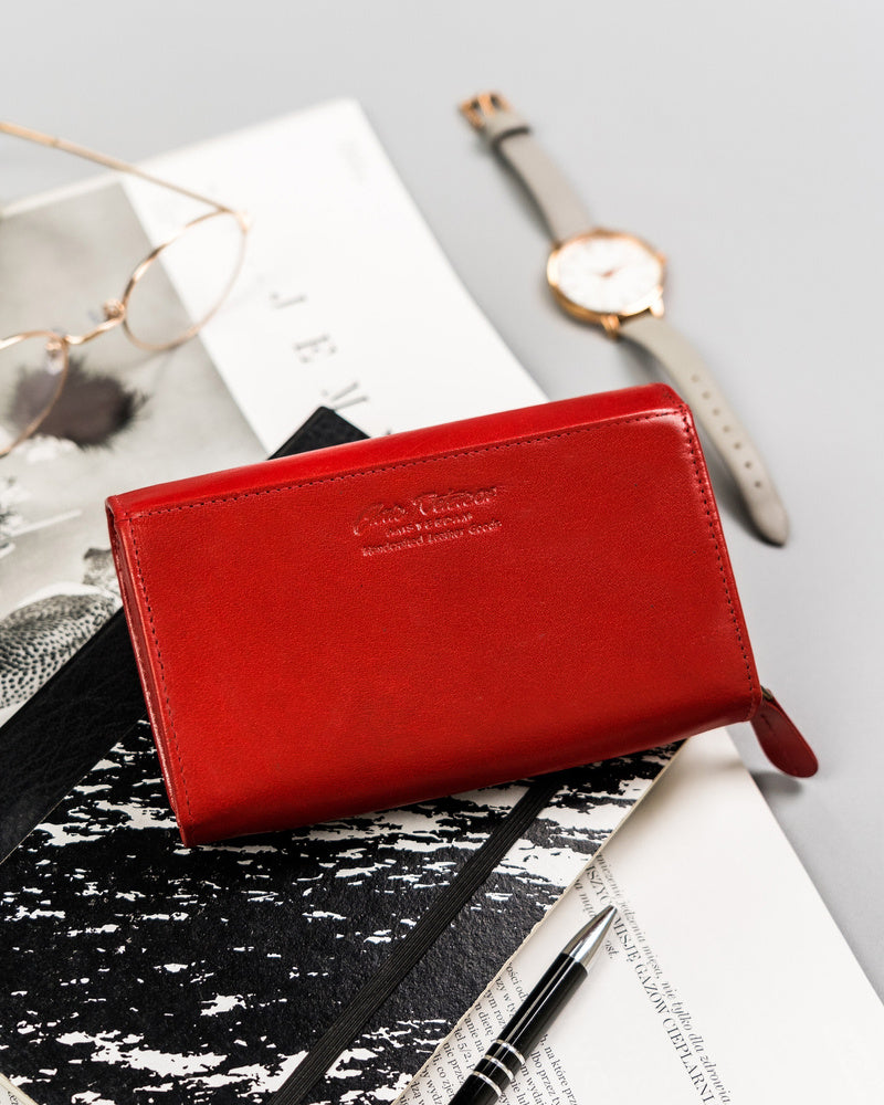Šis elegantais sieviešu maks, kas izgatavots no īstas ādas, ir lieliska izvēle tiem, kas novērtē kvalitāti un stilu. Sarkanā krāsa piešķir tam izsmalcinātību, un lielais izmērs nodrošina, ka jums būs pietiekami daudz vietas visām jūsu mantām.