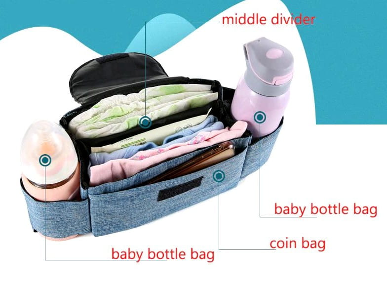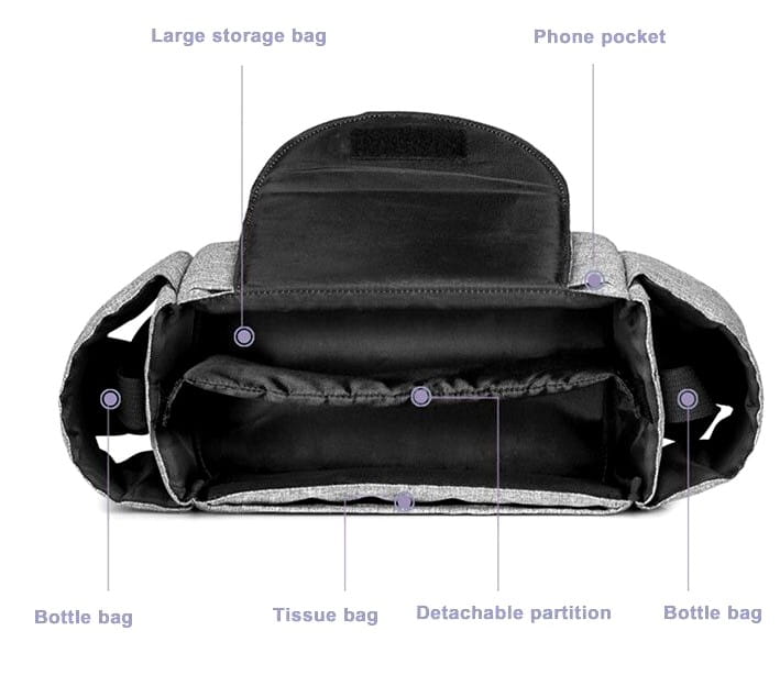 • Ietilpīgs dizains: Var ērti ievietot bērnu mitrās salvetes, tālruni, rotaļlietas, autiņbiksītes, piena pudeles vai dzērienus.