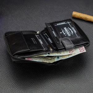 Šis elegantais vīriešu maks ir izgatavots no augstas kvalitātes īstas ādas, padarot to izturīgu un kalpos ilgi. Tas ir ievietots stilīgā kastītē, padarot to par lielisku dāvanu.