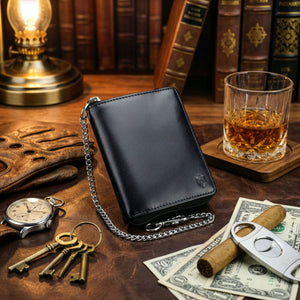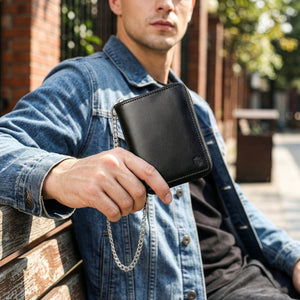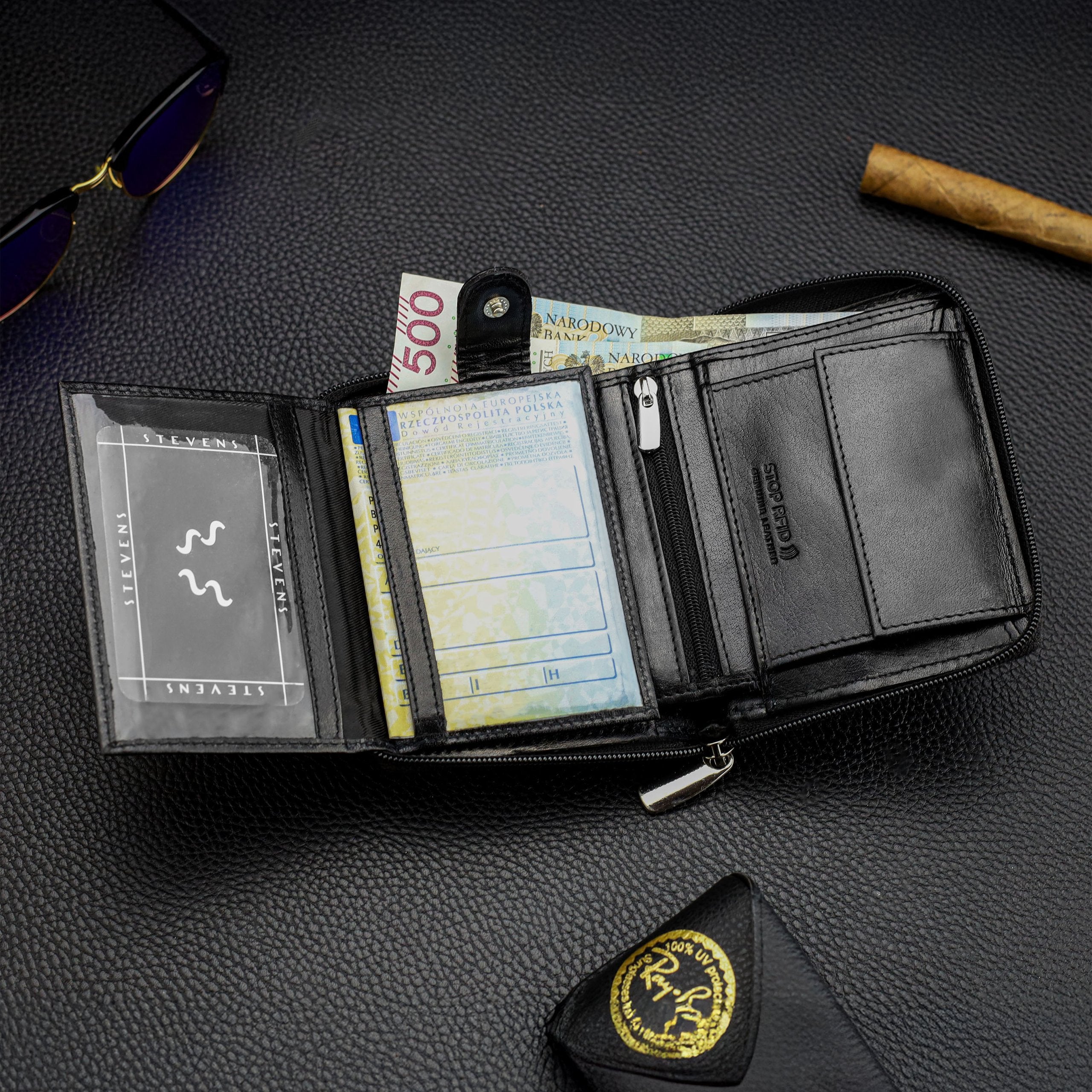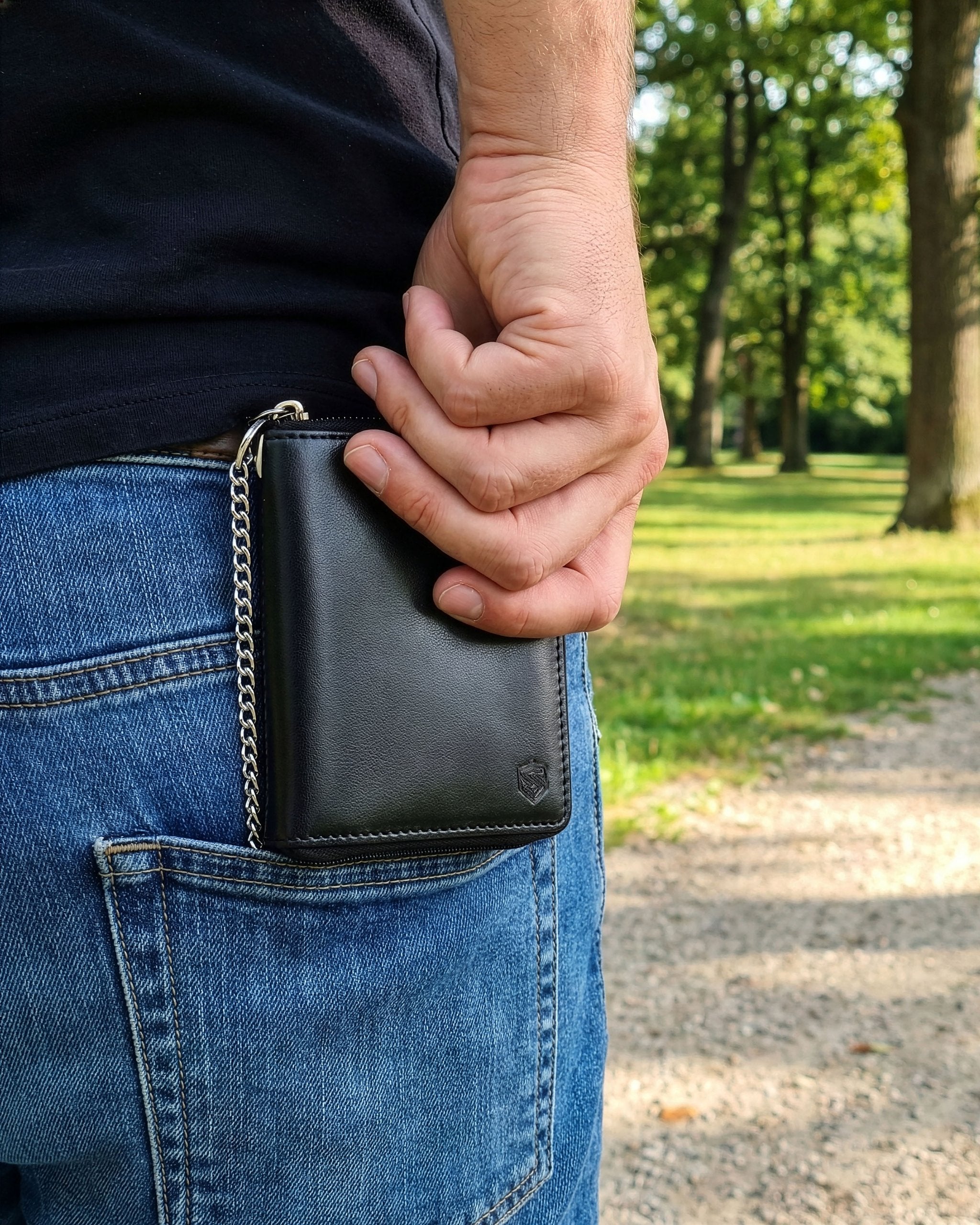 Vīriešu ādas maks ar rāvējslēdzēju un ķēdīti Stevens S160