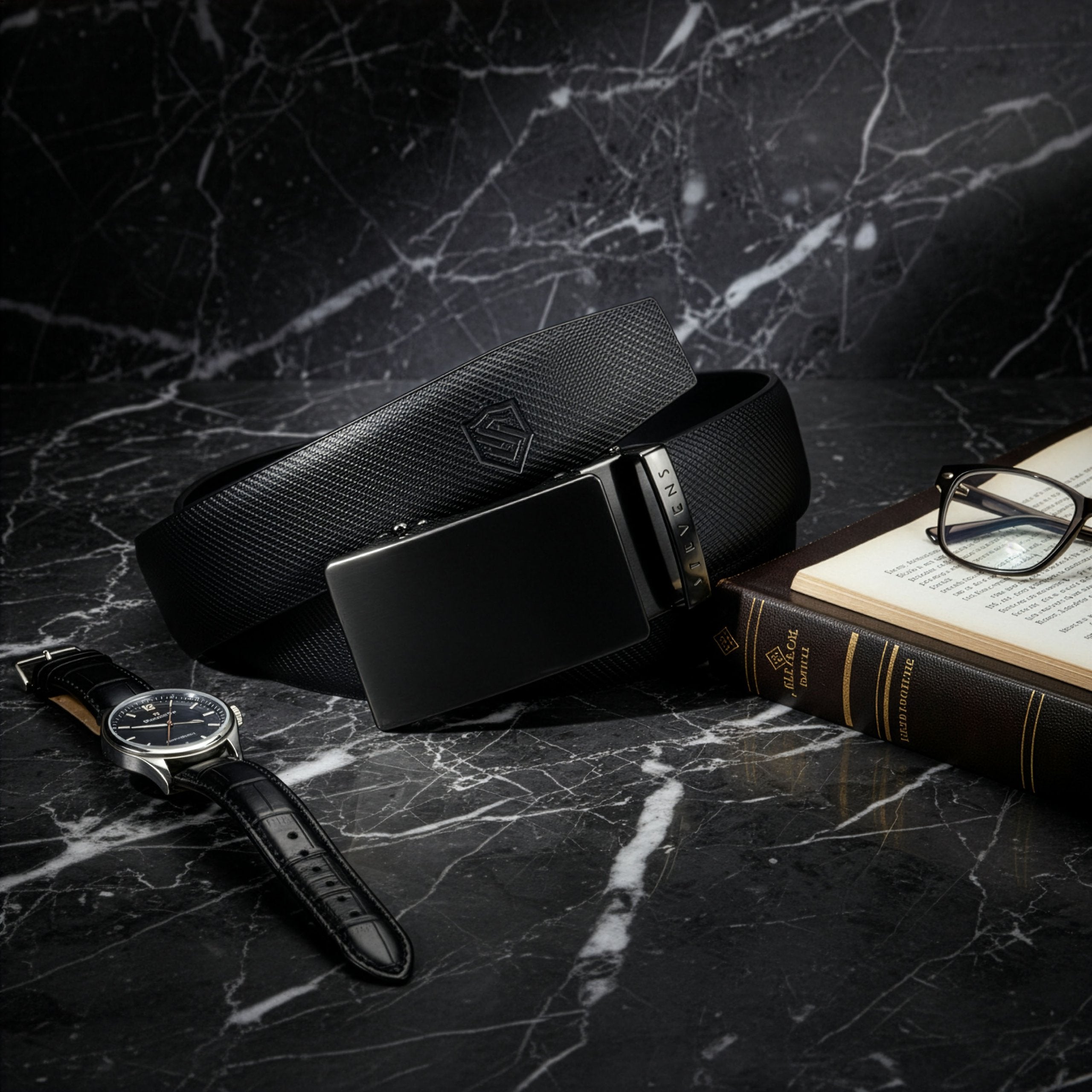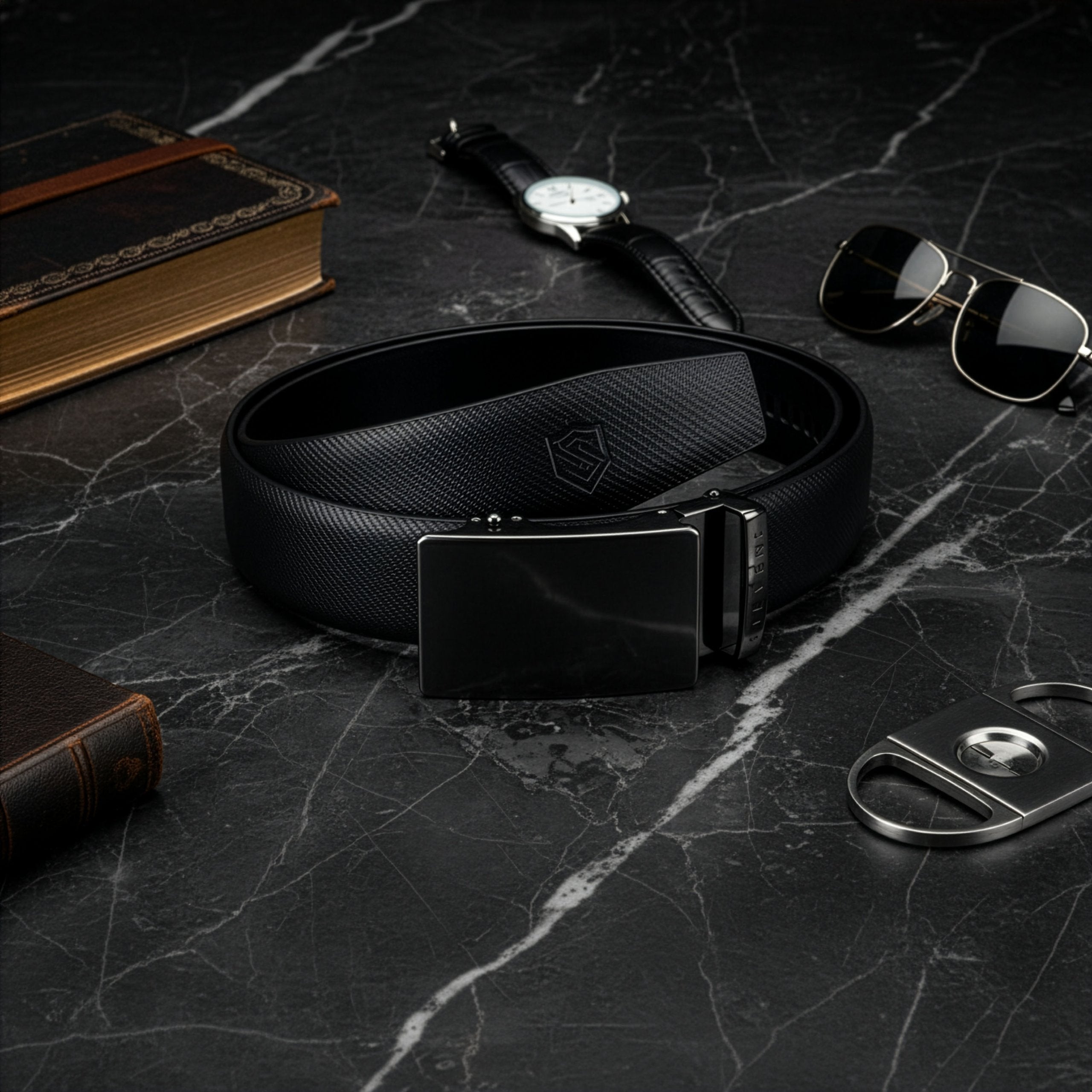 Matēti melna virsma, tīras līnijas, minimālisms. Sprādze apvieno eleganci un izturību – lieliska ikdienai un biznesa stilam.