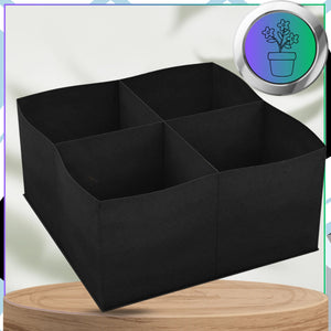 - Konstrukcija: 4 atsevišķi kvadrāti – ļauj audzēt dažādus augus vienā traukā