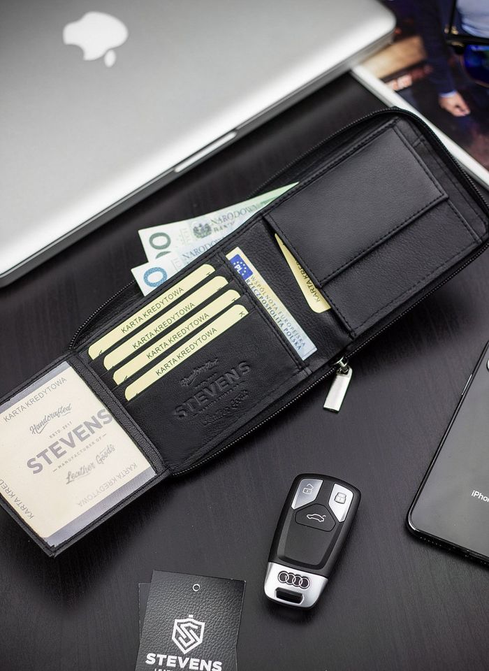 Stevens vīriešu ādas maks ar rāvējslēdzēju